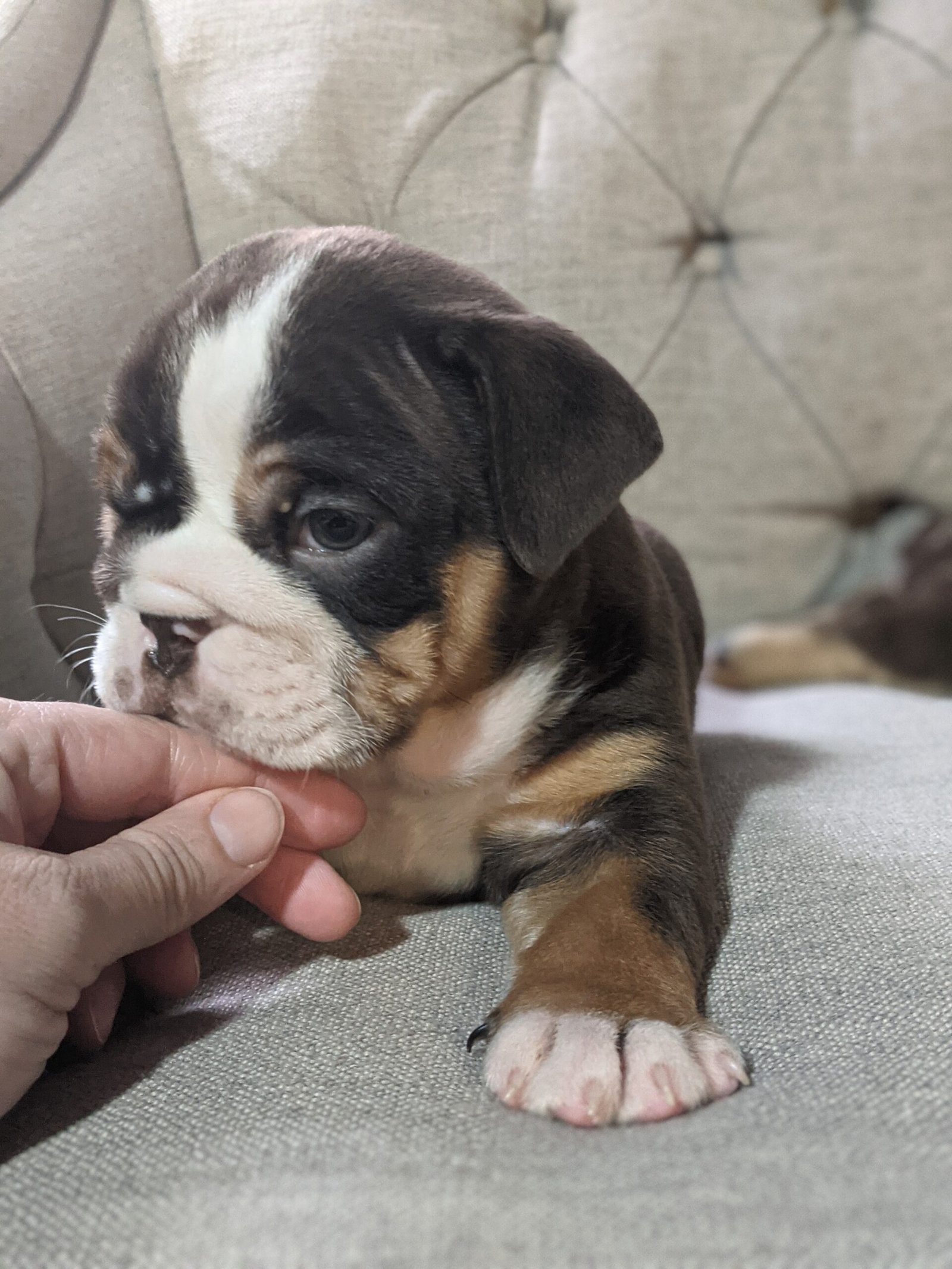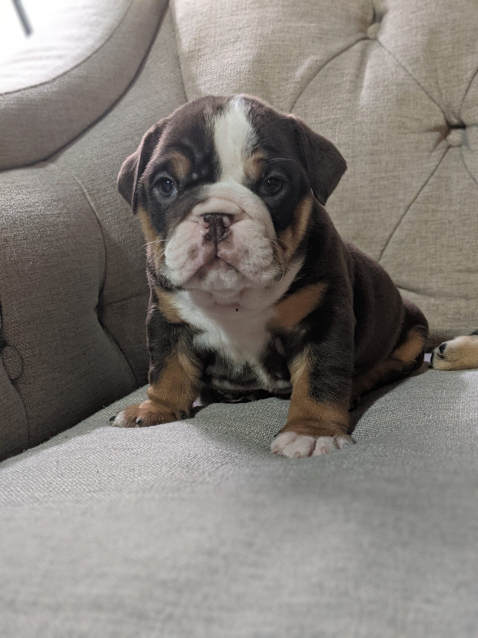 Luna has the sweetest most perfect personality. She is a Chocolate Tri girl. She loves to chew already. She will be up to date on shots and wormed and come vet checked ready for your home.